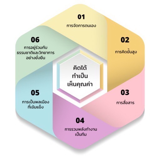 5. การเป็นพลเมืองที่เข้มแข็ง (Civic literacy) เป็นพลเมืองไทยและพลเมืองโลกที่มีความรับผิดชอบต่อตนเองและผู้อื่น เคารพกติกา และมีส่วนร่วมในการตัดสินใจสาธารณะอย่างมีวิจารณญาณ ยึดมั่นในความเท่าเทียม ค่านิยมประชาธิปไตย และสันติวิธี