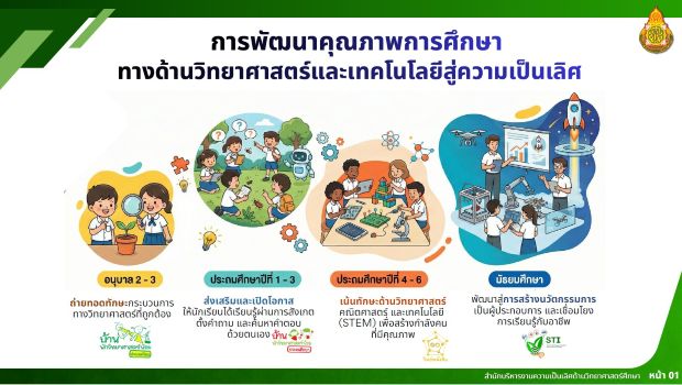 การพัฒนาคุณภาพการศึกษาทางด้านวิทยาศาสตร์และเทคโนโลยีสู่ความเป็นเลิศ ในแต่ละระดับการศึกษา เป็นดังนี้